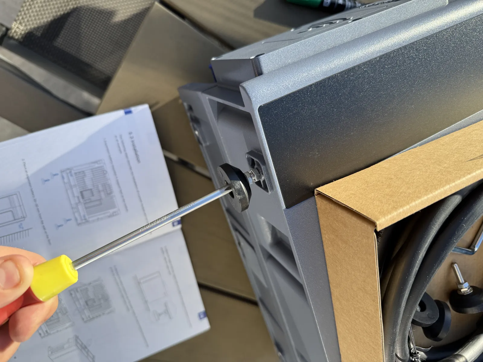 Je klikt de MC4-connectoren van je zonnepanelen eenvoudig in de PV-aansluitingen van de SolidFlex 2000. Bij het loshalen merkten wij echter dat je voor één van de twee connectoren echt een MC4-sleutel nodig hebt. Door de beperkte ruimte rondom de PV-ingangen lukte het niet om deze connector met de hand los te koppelen.